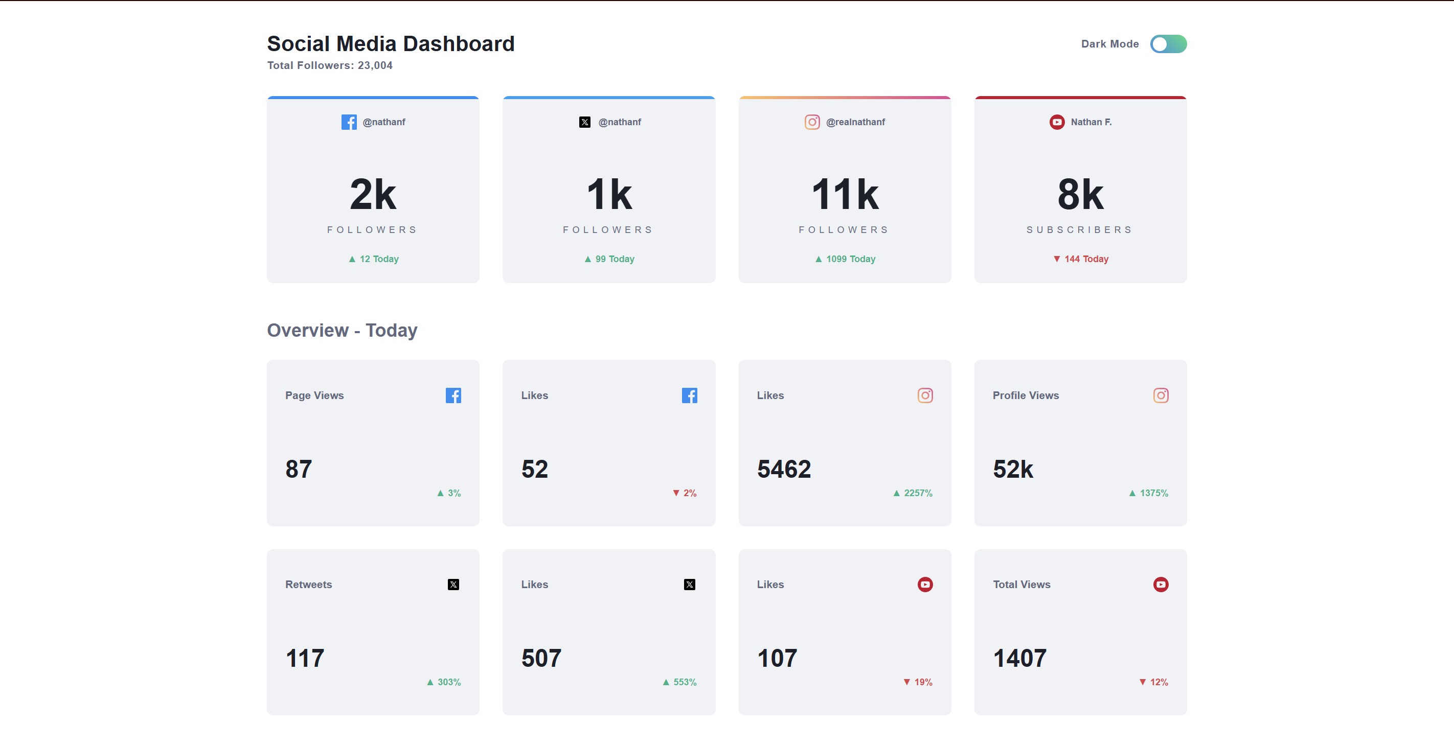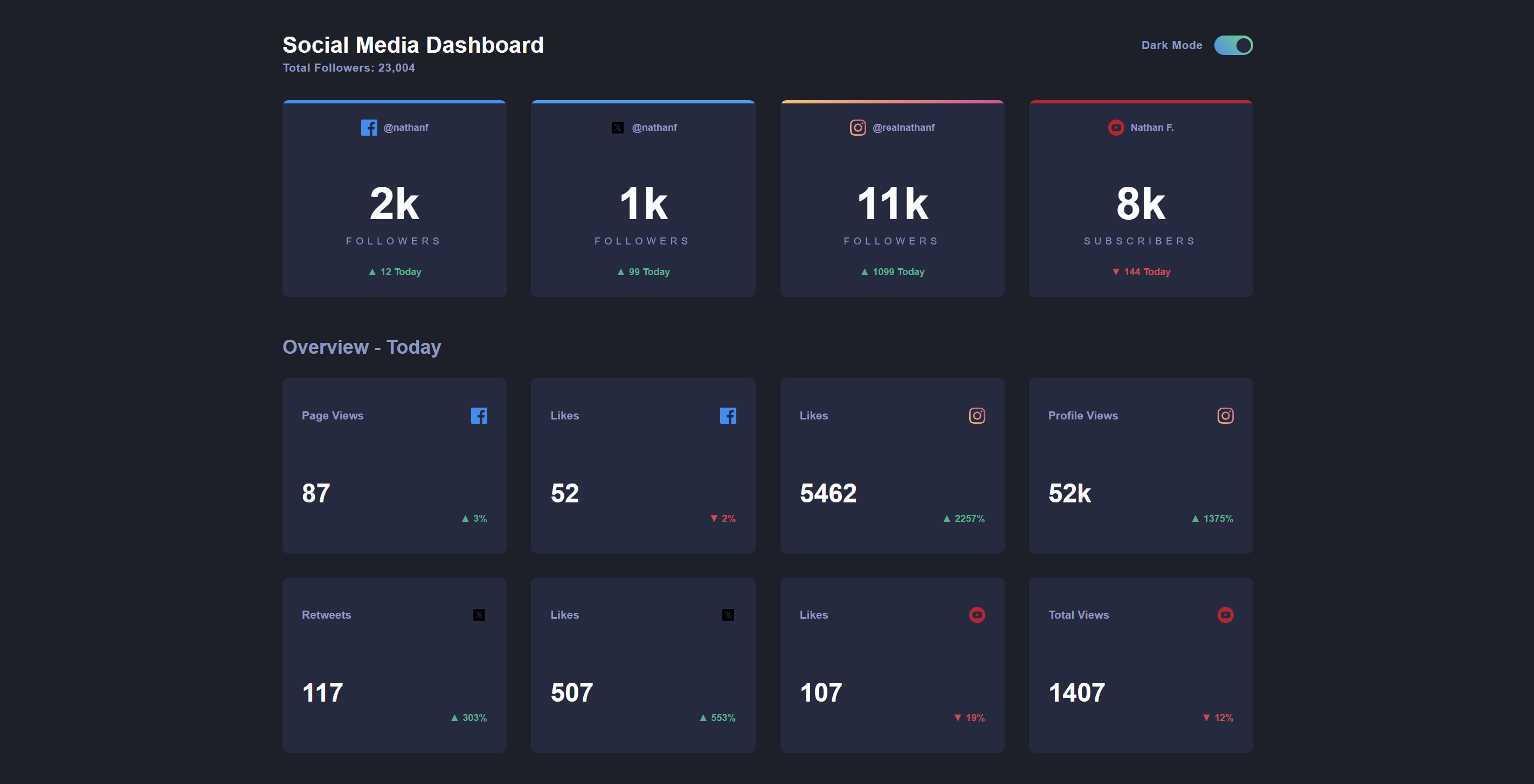 Ceci est une solution au défi Social media dashboard with theme switcher sur Frontend Mentor. Ce challenge m’a permis d’améliorer mes compétences en développement front-end à travers un projet réaliste.
